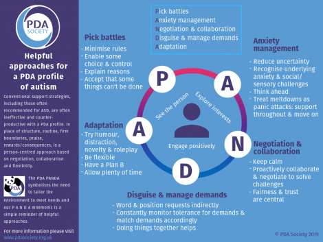 From personal experience, the strategies that are most helpful to a child with PDA differ very much to strategies that are used for an autism profile or similar. I find that a PDA approach needs to be very tailored to the individuals needs, it needs to support high anxiety and needs to allow the person to feel an element of feeling ‘in control’.