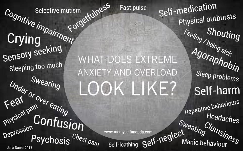 PDA describes the way that a person may struggle with everyday demands. PDA can leave a sufferer feeling as though a simple request is a personal attack, this leading to lashing out and meltdowns.